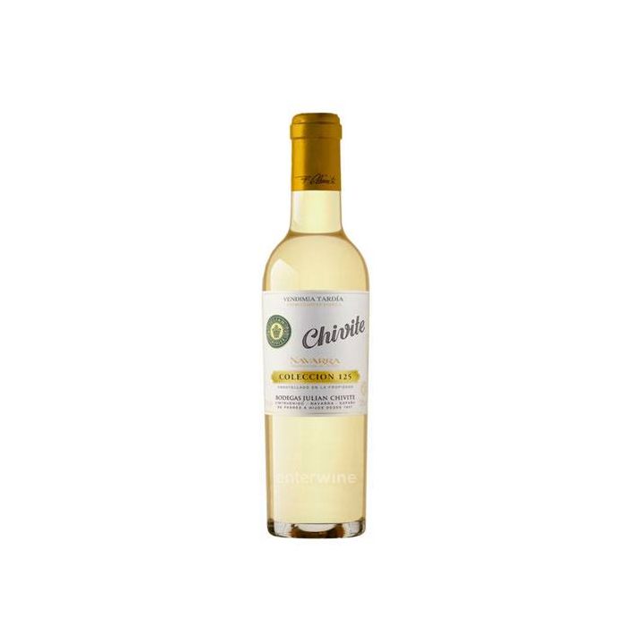 Made from Moscatel de Grano Menudo ("Muscat Blanc à petits grains"), the wine Chivite Colección 125 Vendimia Tardía (meaning "Late Harvest") is a single vineyard sweet white wine coming from vines grown in limestone soils. The vineyard, named Finca El Candelero, is located at an altitude of 400 metres above sea level.