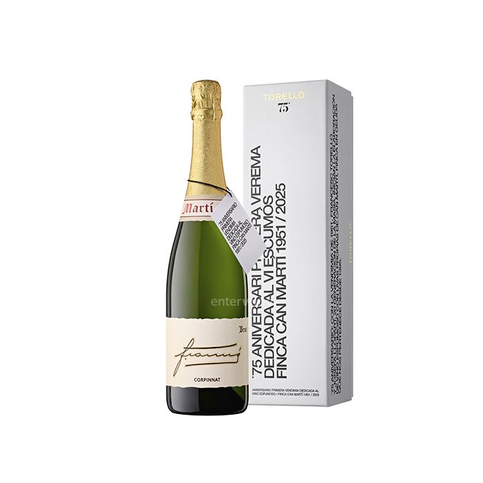 Once secondary fermentation was completed, the Corpinnat sparkling wine Torelló 75 Aniversari Brut 2018 was aged for 75 months before being disgorged and added a small amount of liqueur de dosage.